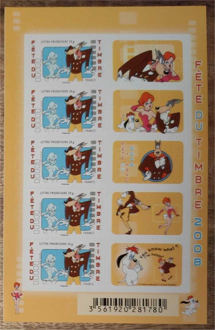 💌 Fête du timbre 2008 💌 Tex Avery le Loup Feuille autoadhésive neuve, non oblitérée - Série le Loup Etat neuf .