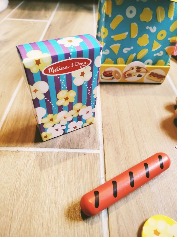 ✨Le Pop-Corn : Une boîte thématique colorée "Melissa & Doug" accompagnée de 3 disques de pop-corn en bois.