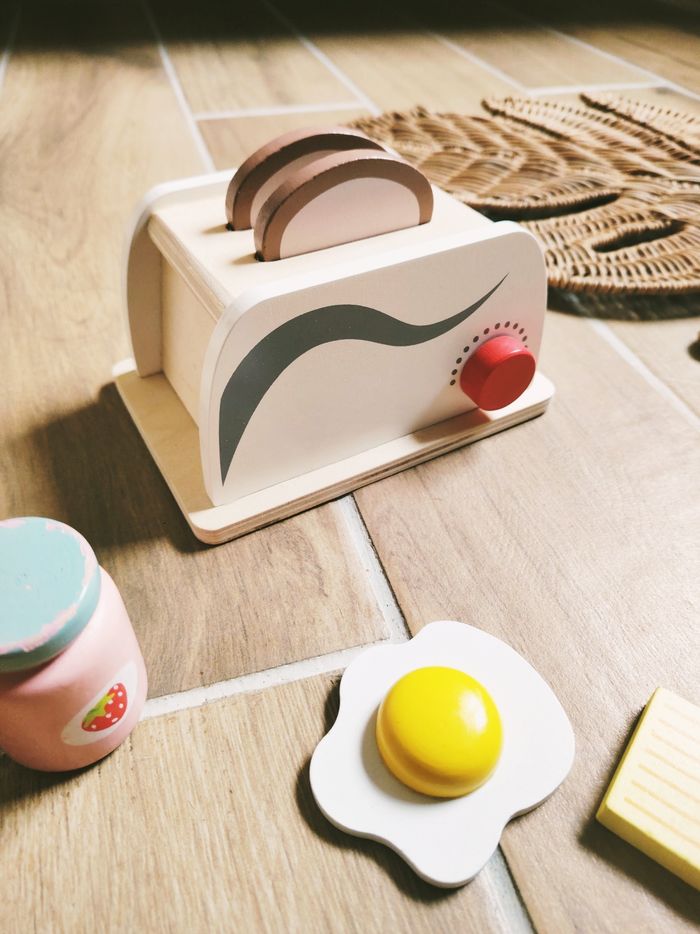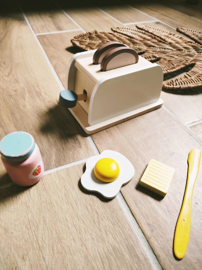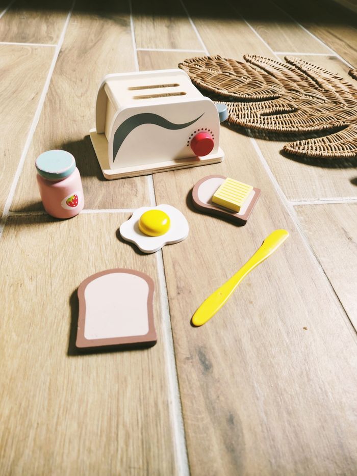 🍳Jeu d'imitation - Dinette en bois grille pain et petit déjeuner - JB1972
