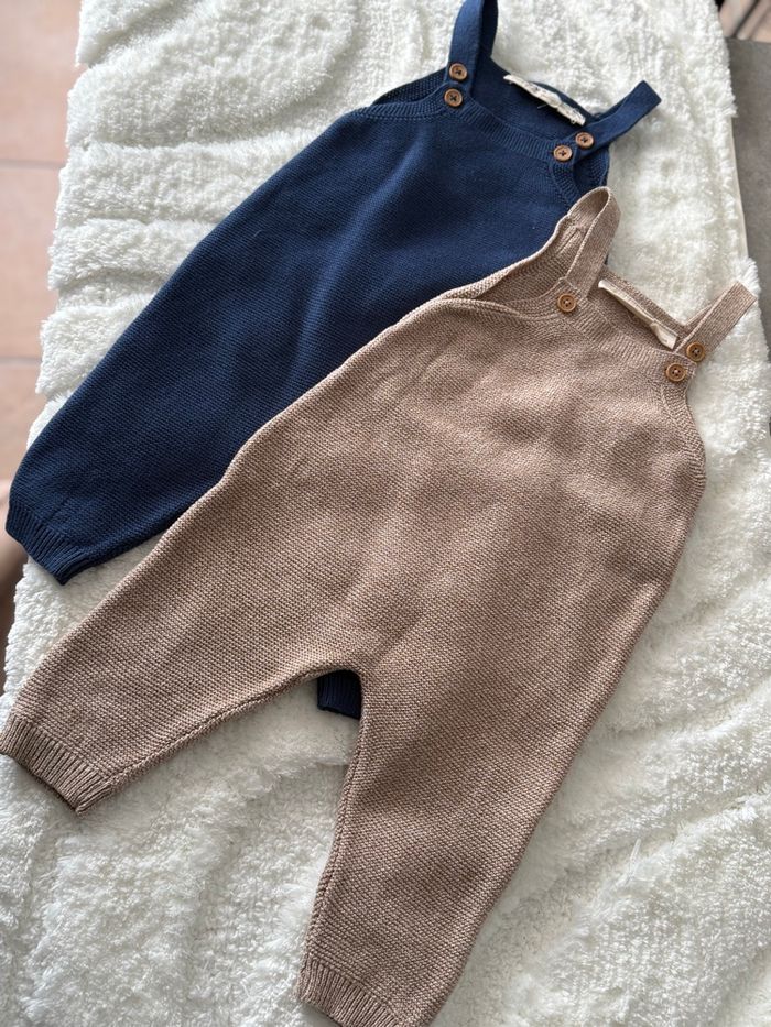 Lot 2 salopettes bébé maille beige et bleu