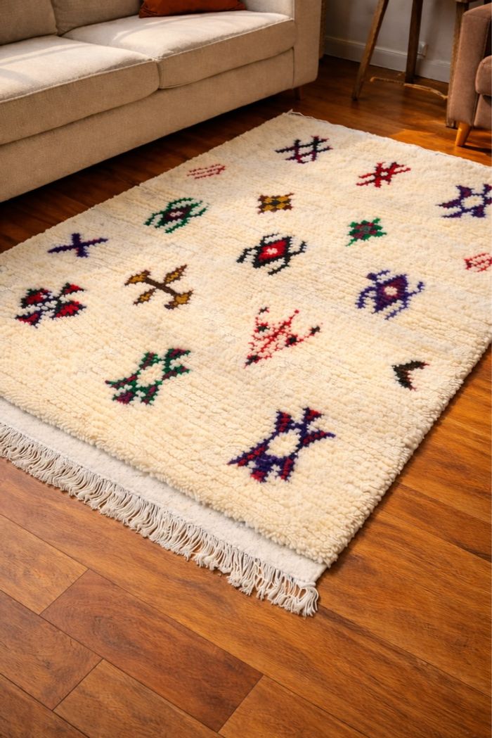Tapis berbère fait main en 100% laine au motifs traditionnels de l’Atlas