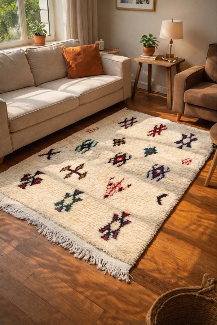 Tapis berbère fait main en 100% laine au motifs traditionnels de l’Atlas - photo numéro 6