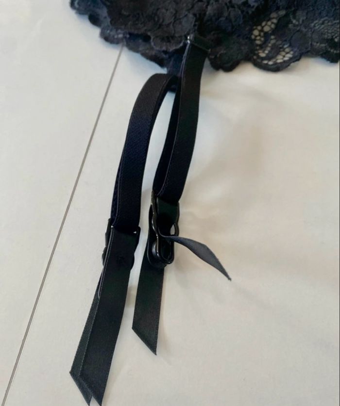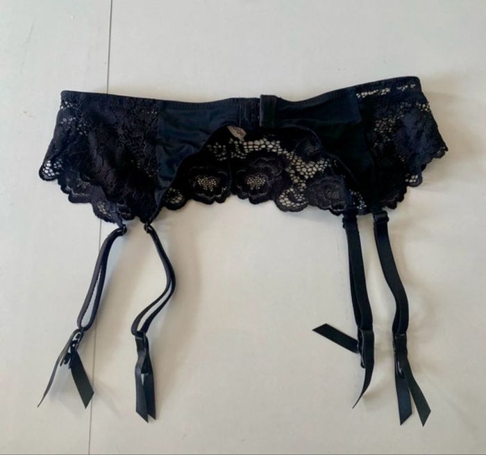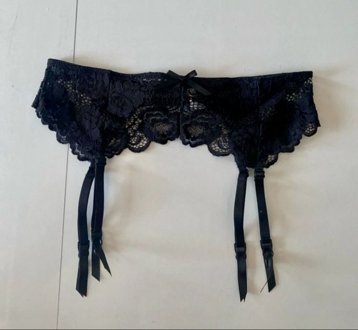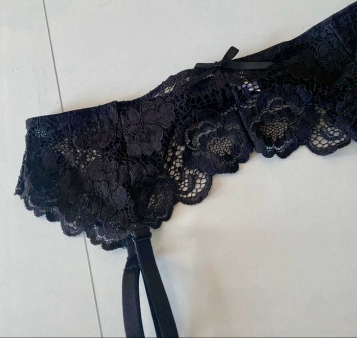 Porte-jarretelles noir en dentelle, une pièce incontournable pour sublimer votre collection de lingerie. N'hésitez pas à me contacter pour plus d'informations ou de photos.