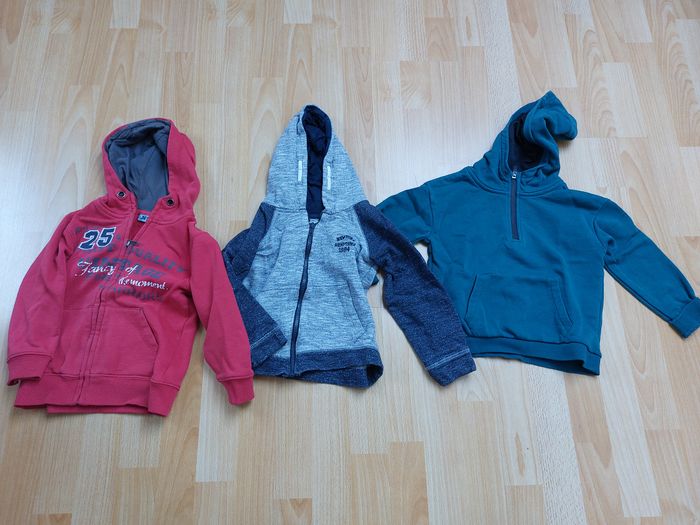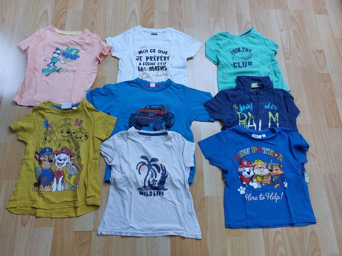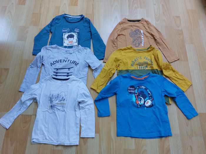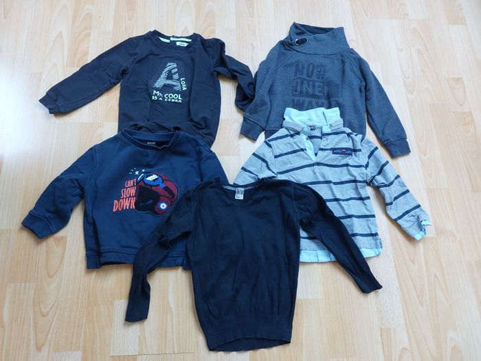 Vend lot de vêtement garçon 4 ans avec : - 4 pantalons - 6 pulls, dont 1 avec capuche - 2 vestes - 8 t-shirts manches courtes - 12 t-shirts manches longues
