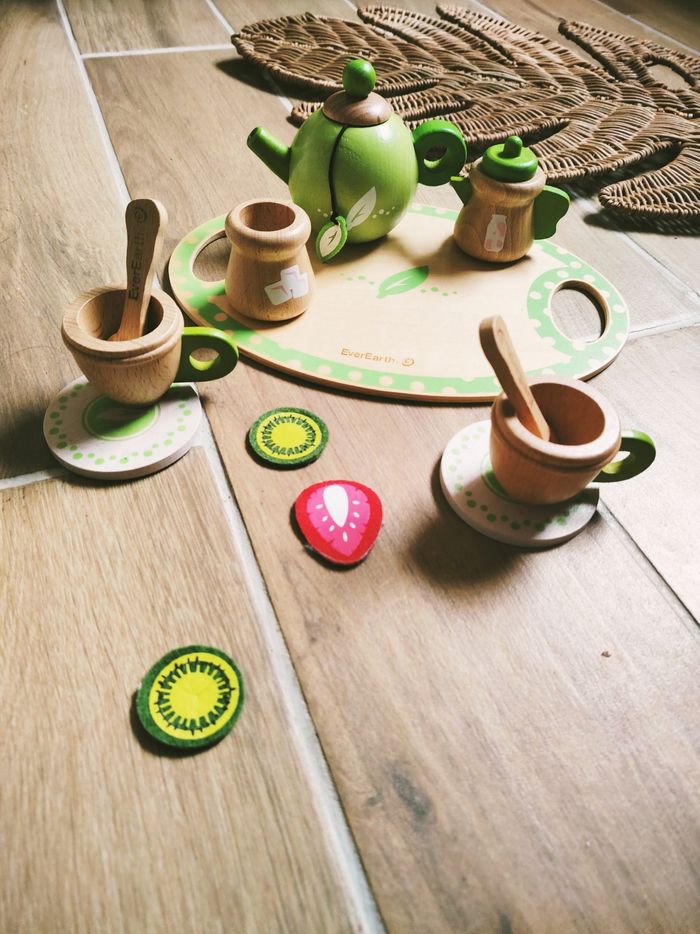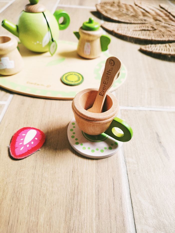 🍵 Jeu d'imitation - Dinette Service à Thé en Bois - marque EverEarth - JB1971