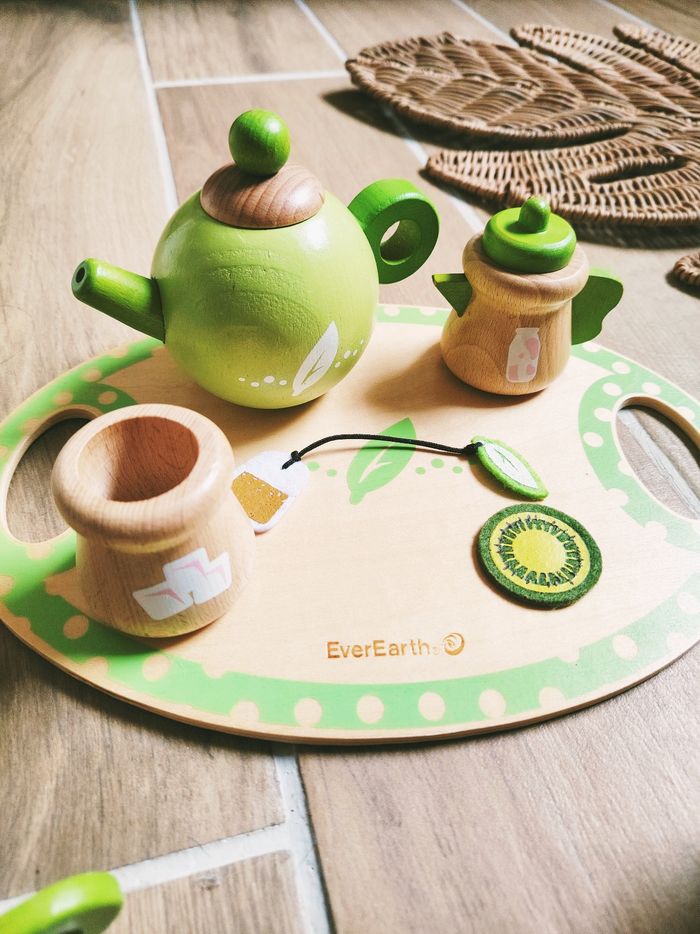 🎀Offrez un moment de douceur et de jeu d'imitation avec ce superbe service à thé de la marque renommée EverEarth. Fabriqué en bois de haute qualité, ce jouet est aussi robuste qu'esthétique avec ses tons naturels, verts et ses motifs de feuilles.