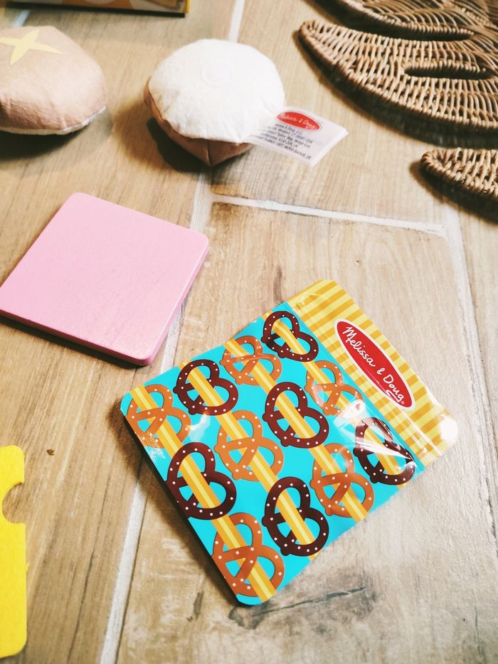 ✨Accompagnement : Un sachet de bretzels croustillants "Melissa & Doug" (factice).