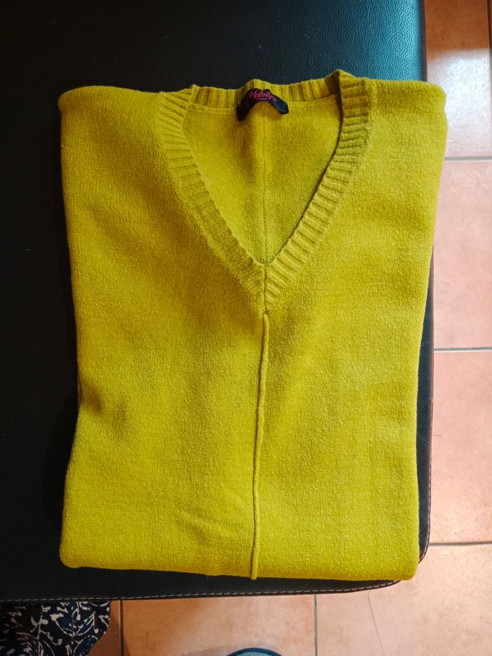 Pull vert en très bon état taille L 42/44 (mis 1 fois) longueur 73cm devant et 80cm derrière