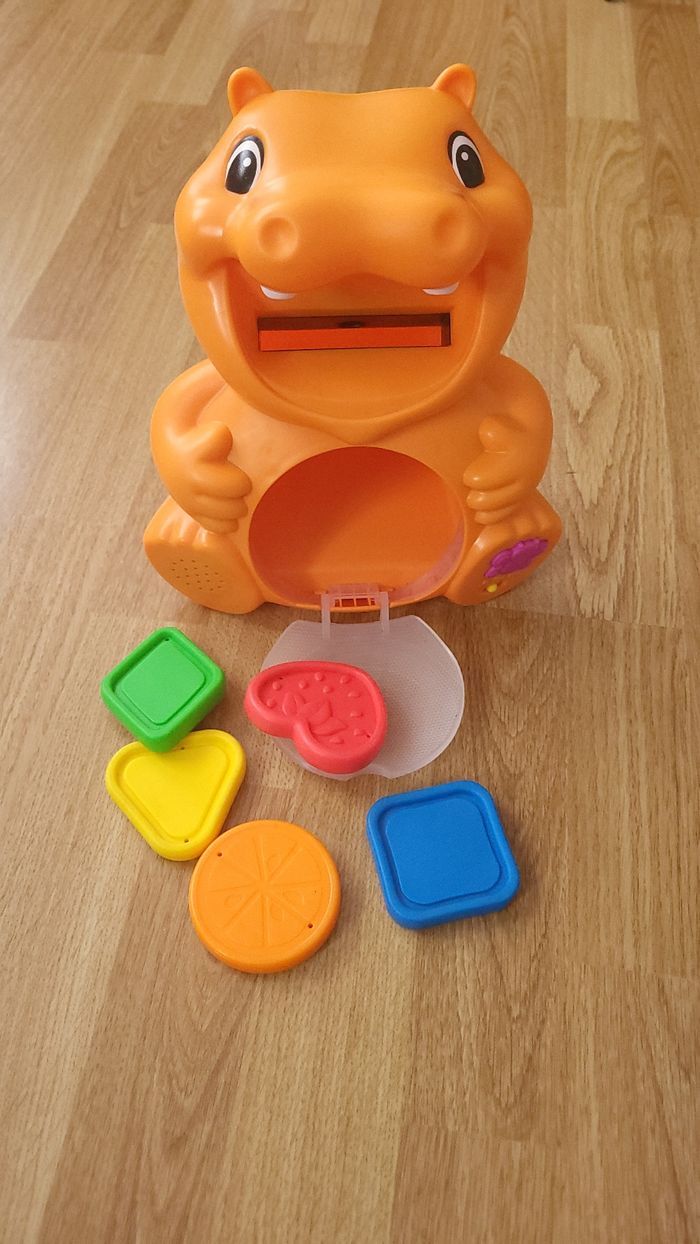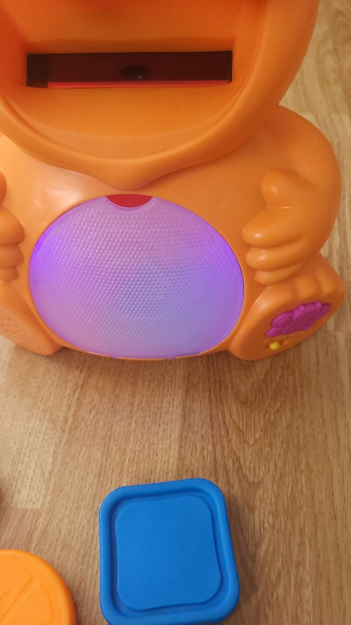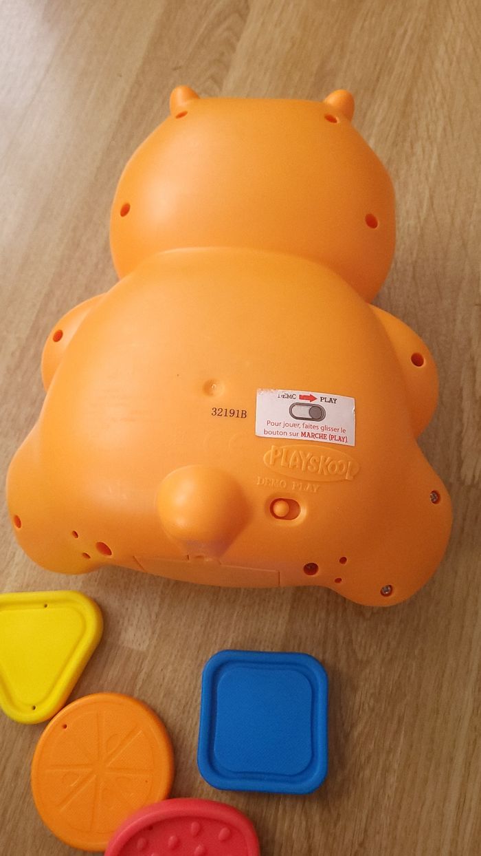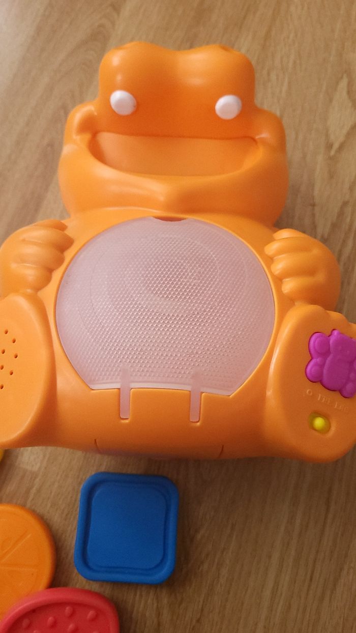 Jeu pour apprendre les formes et les couleurs en parfait état de fonctionnement. Je mets bon état car il a servi et il y a quelques marques/griffures. Piles retirées pour la vente