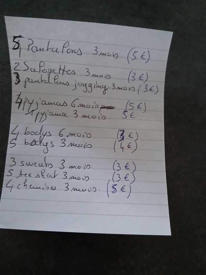 Divers vêtements bébé de 3 a 6 mois voir la liste peu faire aussi un lot de tous