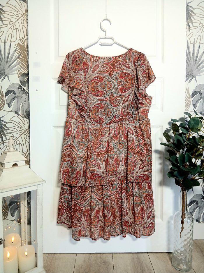 Robe Bréal – Taille 44 – Motif bohème rouge & beige – Fluide & féminine - photo numéro 2