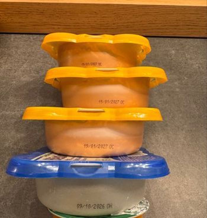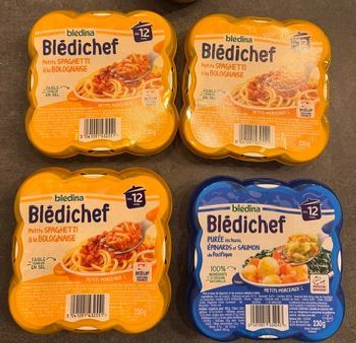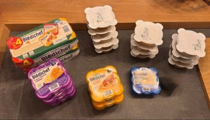 12 repas midi 12 mois dont : - 5 Couscous 24/09/26 - 3 Riz aux légumes poulet 15/01/27 - 3 Spaghetti Bolognaise 19/01/27 - 1 Purée épinard saumon 09/10/26 8 Repas soir 12 mois dont : - 2 risotto épinard kiri 19/08/26 - 2 mouline carotte semoule 04/09/2026 - 2 Potiron panais boulgour kiri 14/05/26 - 1 Fondue de courgettes macaronis 23/01/27 - 1 Crémeux mais et patate douce 12/02/2027 - 2 lots de 4 repas midi 12/15 mois (4 Spaghettis bolognaise + 4 Cassolette patates douce légumes poulet) 03/12/26