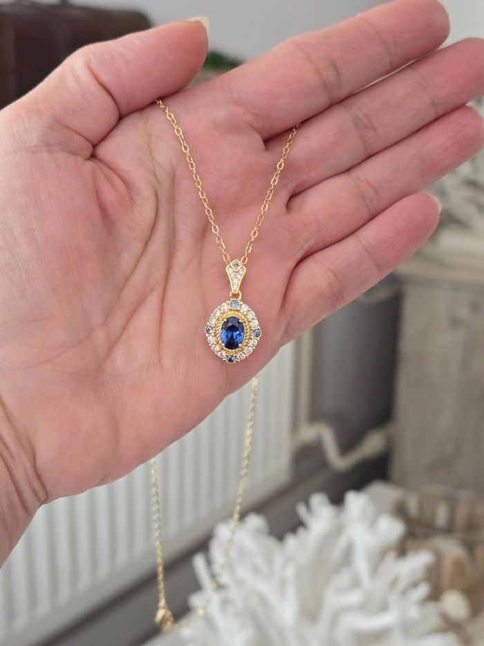 Collier doré avec pendentif bleu  - photo numéro 4