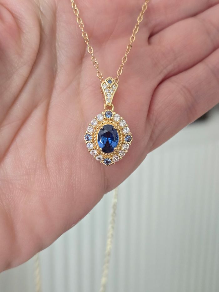 Collier doré avec pendentif bleu  - photo numéro 3