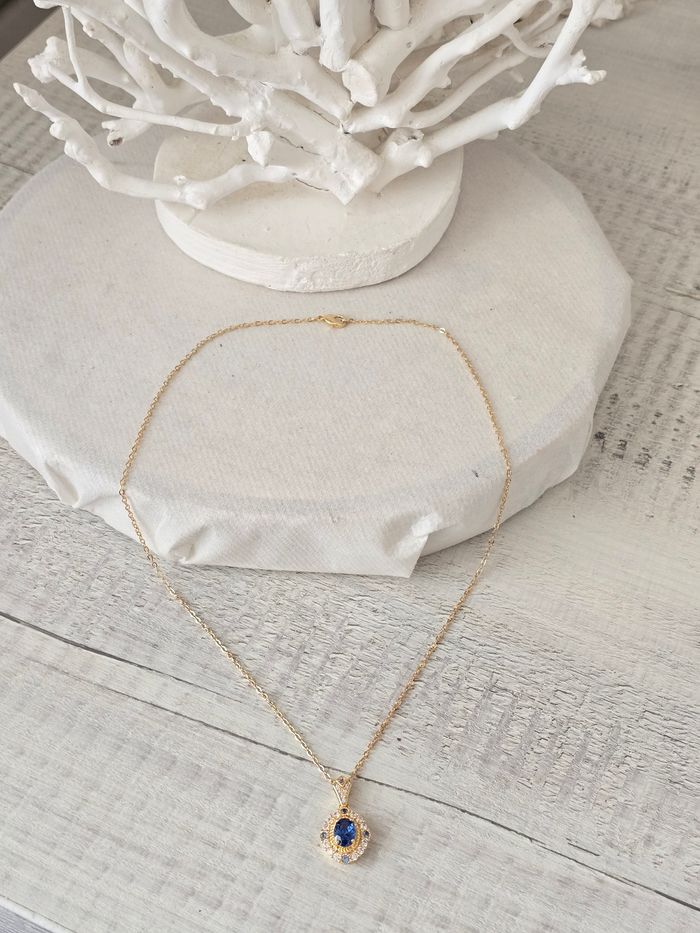 Collier doré avec pendentif bleu  - photo numéro 1