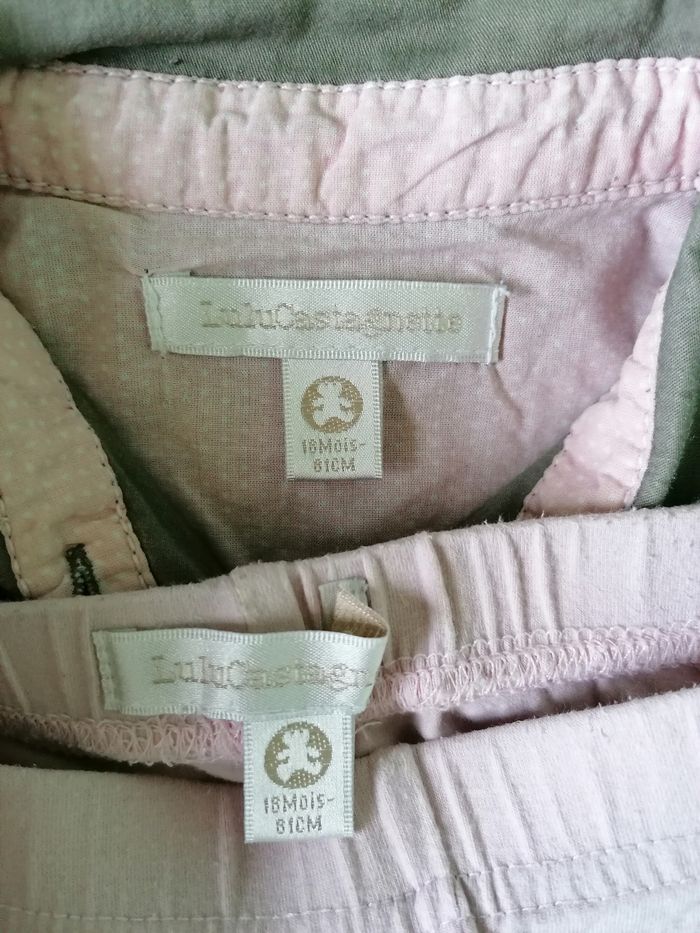 Bonjour, Je vends cet ensemble Lulu Castagnette composé d une robe et d un legging court pour fille 18 mois.