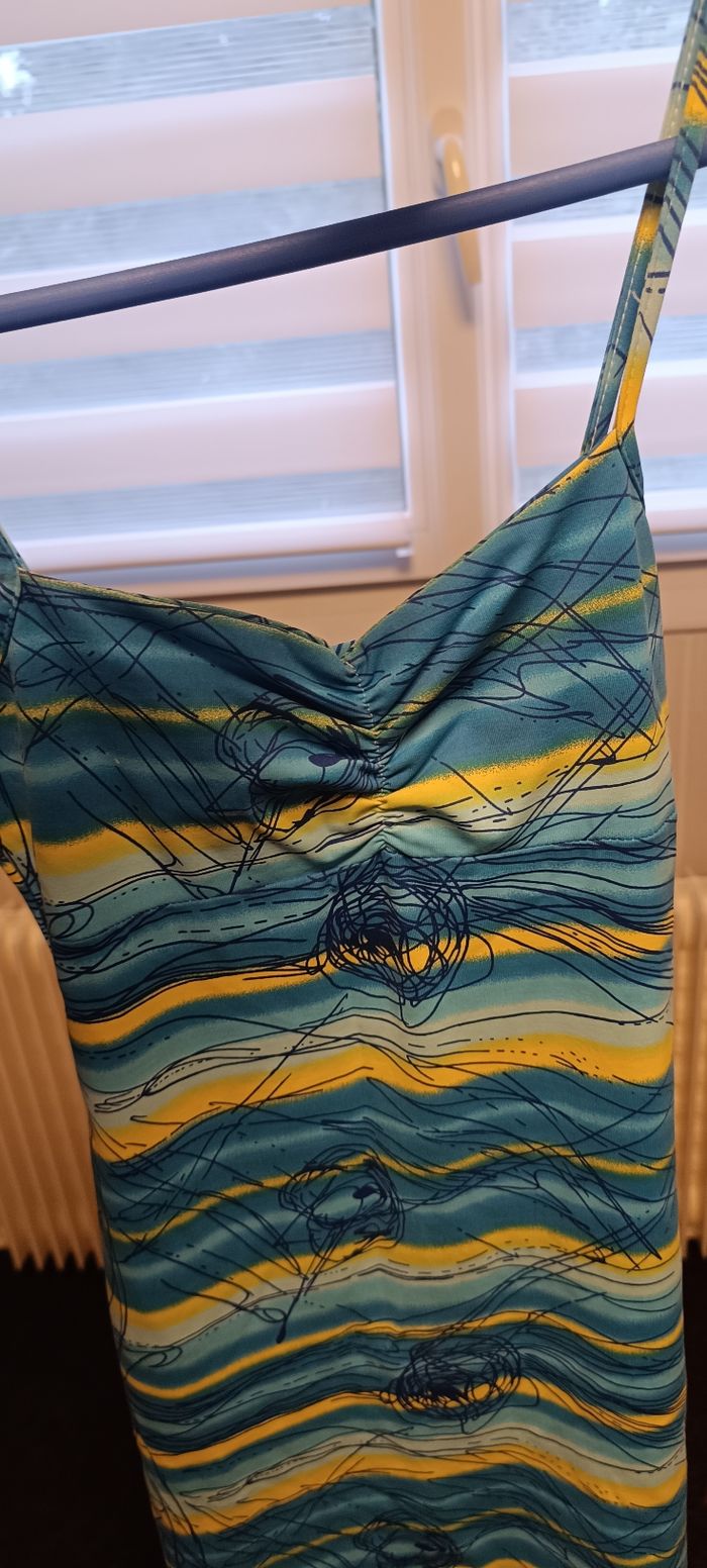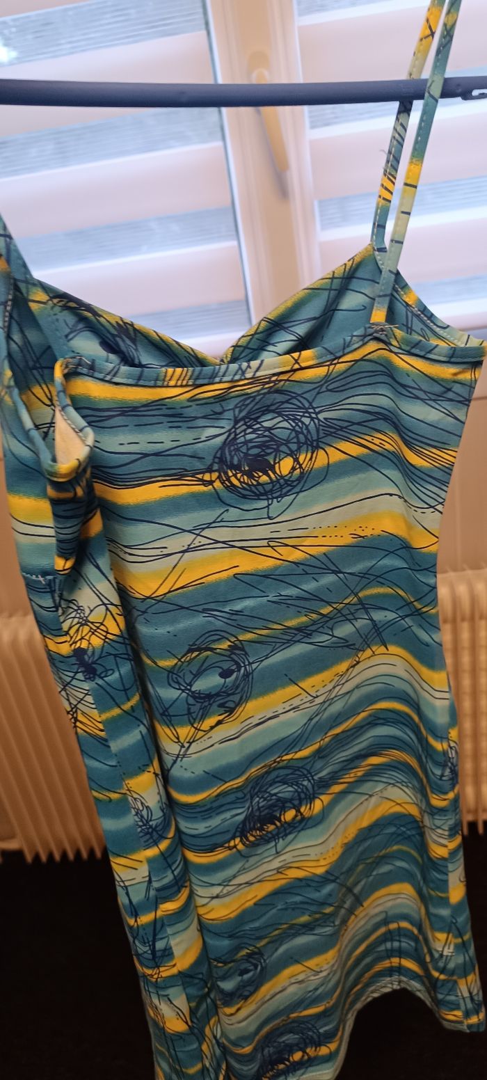 Mini robe été a bretelle en très bonne état quasi neuf couleur bleu et jaune