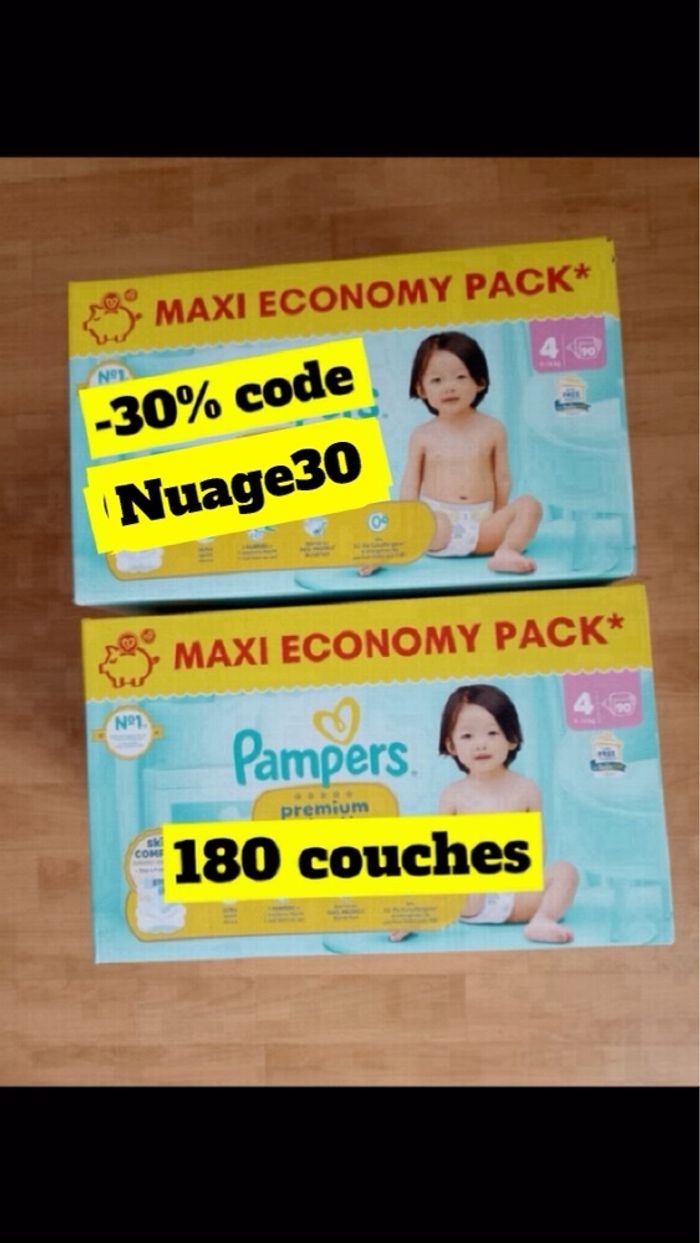 ⚠️ -30% avec le code promo : nuage30⚠️ 🛍️ Plusieurs lots disponibles dans mon dressing Pampers premium protection Taille 4 (9/14 kg) 📏 2 cartons de 90 couches Total : 180 couches Neuf jamais ouvert Envoi rapide le jour même __________________ Autre offre disponible dans mon dressing couche : Pampers taille 3 Pampers taille 4 Pampers taille 4+ Pampers taille 5 Pampers pants Pampers harmonie Pampers premium protection