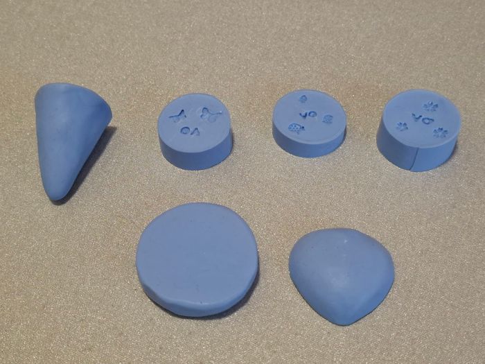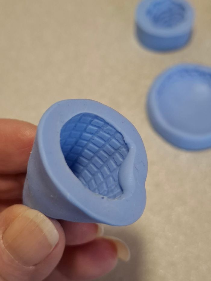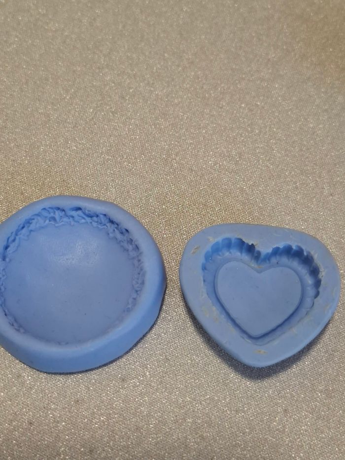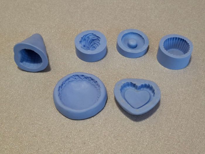 Joli lot de 6 moules en silicone pour créations gourmandes de macaron (diamètre 4 cm), cône de glace (4 x 2 cm), meringue (2 x 2 cm), donut (diamètre 2,2 cm), fond de tarte coeur (3 x 3 cm) et fond de cupcake (diamètre 2,3 cm, hauteur 1,2 cm) en pâte fimo, pâte à sel, argile, pâte à sucre, pâte d'amande, etc ... Idéal pour faire des boucles d'oreilles, colliers, porte-clés ou pour maison de poupées. Utilisé quelquefois pour quelques formes et certains encore neufs Nombreux détails réalistes.