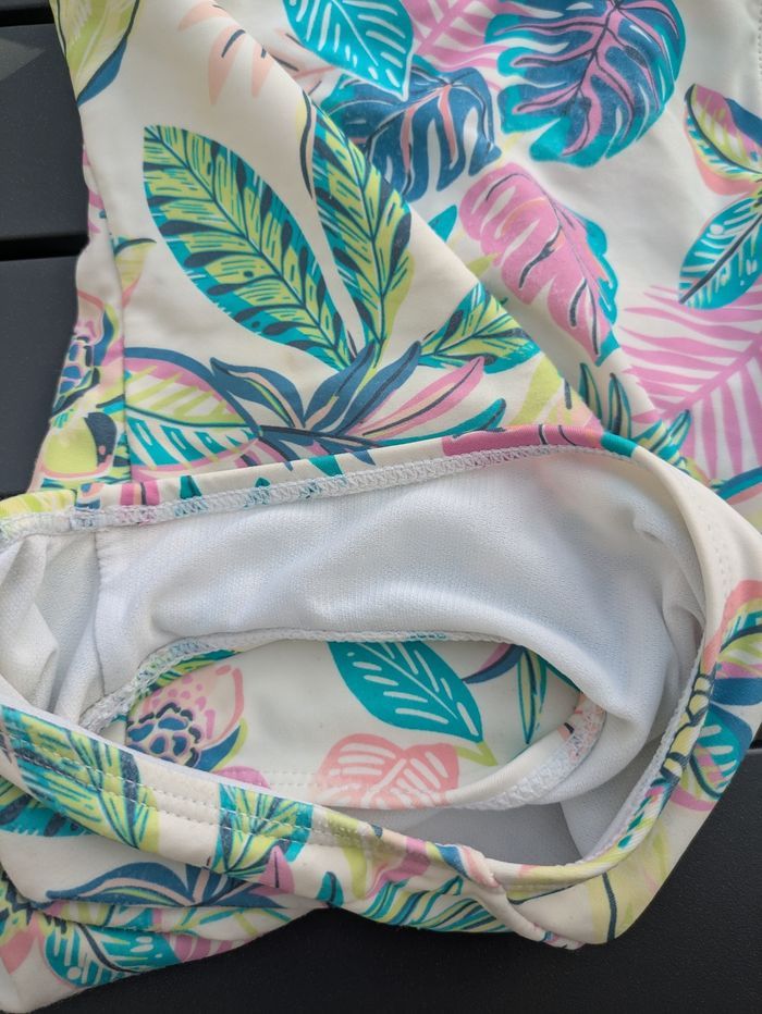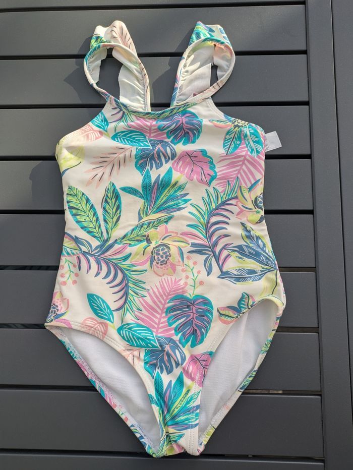 Bonjour, Je vends ce joli maillot de bain 1 pièce à fleurs pour fille 5 ans. Petite bouloche (cf dernière photo).