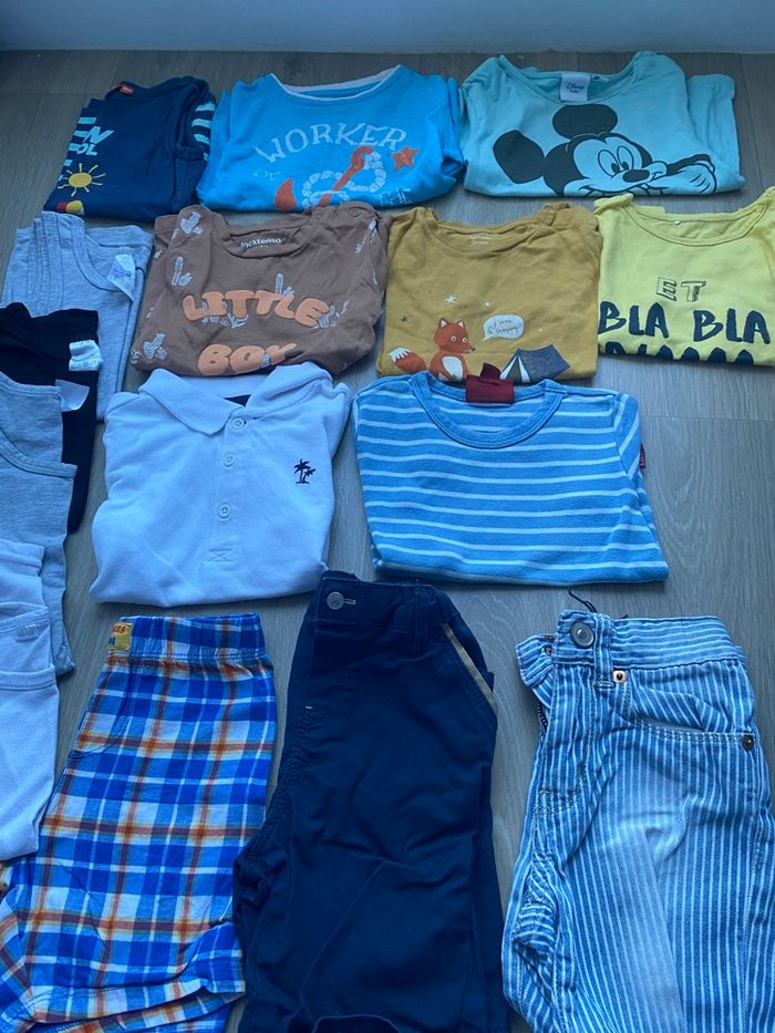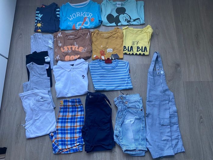 Lot vêtement garçon 24 mois été 7 t shirt , 3 short, 1 salopette, 5 débardeur, 2 ensemble léger, 2 haut maillot de bain, 6 body court. 20€