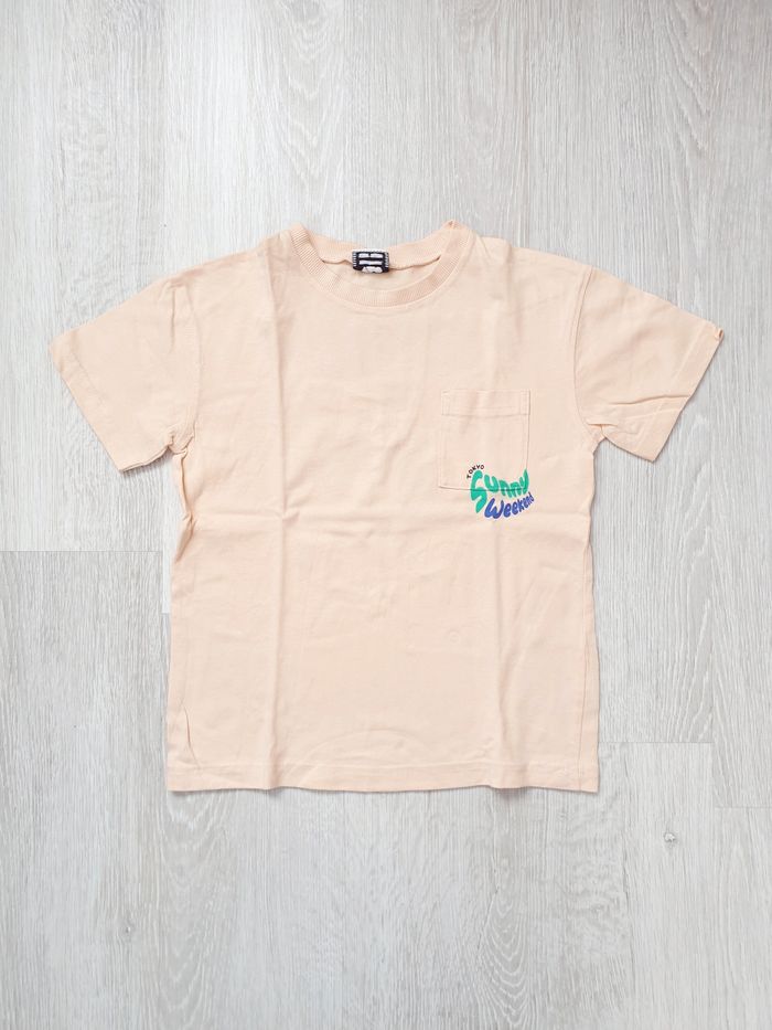 5 ans. Parfait état. Valeur neuf 10€. T-shirt manches courtes et col rond • Coton biologique • Coloris orange • Imprimé thème tokyo.
