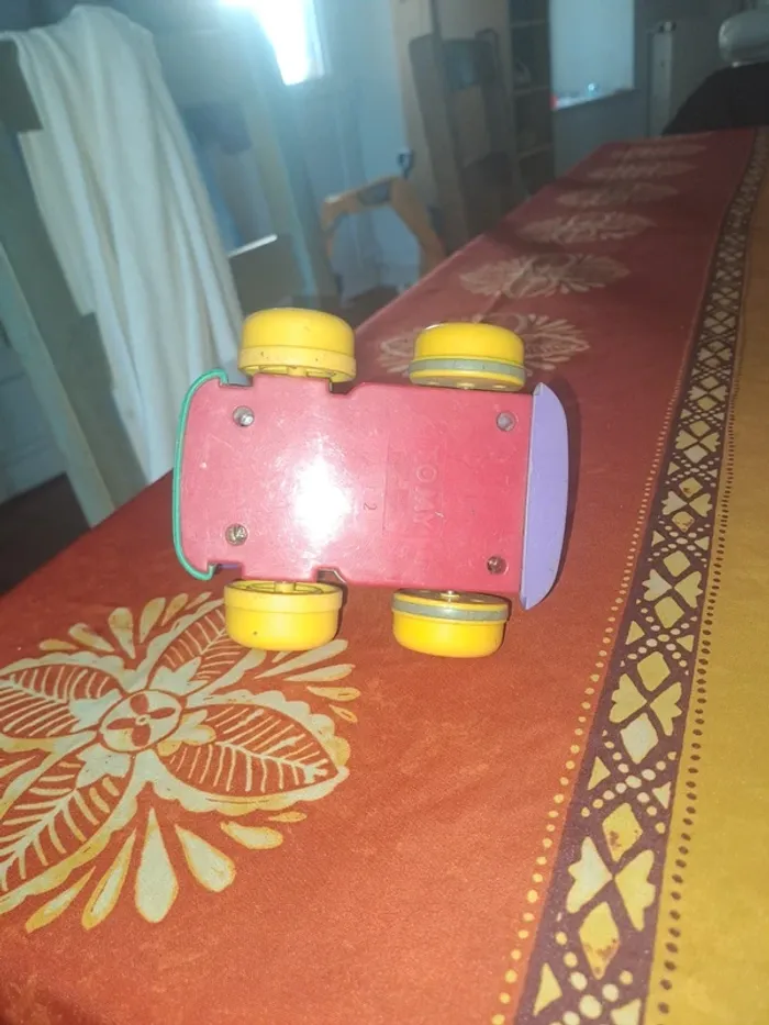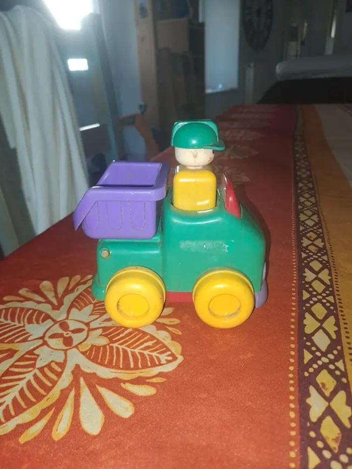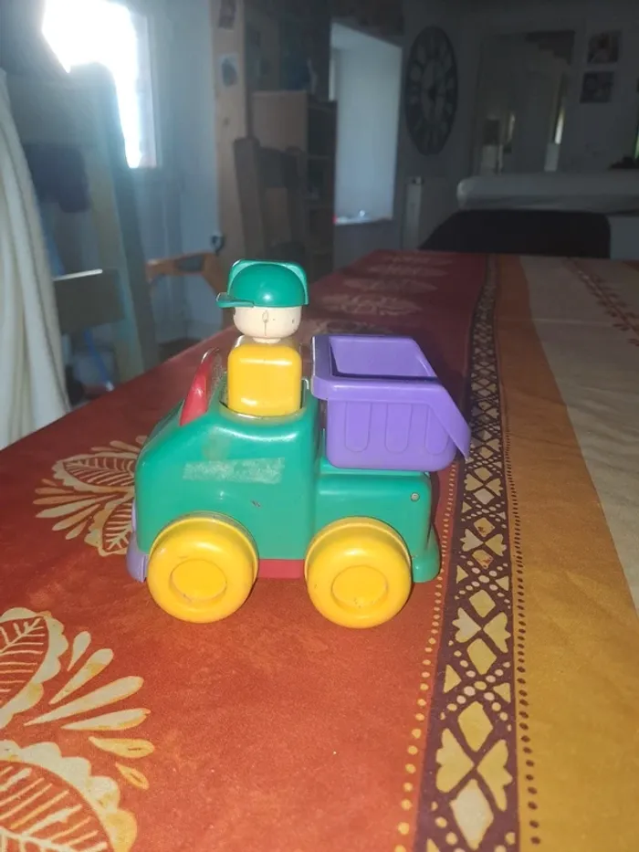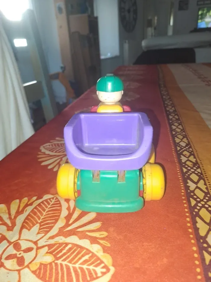 Je vends ce jouet d'éveil coloré pour les tout-petits, parfait pour stimuler leur imagination et leur motricité ! - Type de produit : Jouet d'éveil - Composition du lot : 1 véhicule avec figurine amovible - Matière : Plastique - Couleurs : Vert, jaune, rouge, violet - Fonctionnalités : Figurine empilable, roues mobiles - Âge recommandé : De 0 à 3 ans Très bon état. N'hésitez pas à me contacter pour plus d'infos ou de photos !