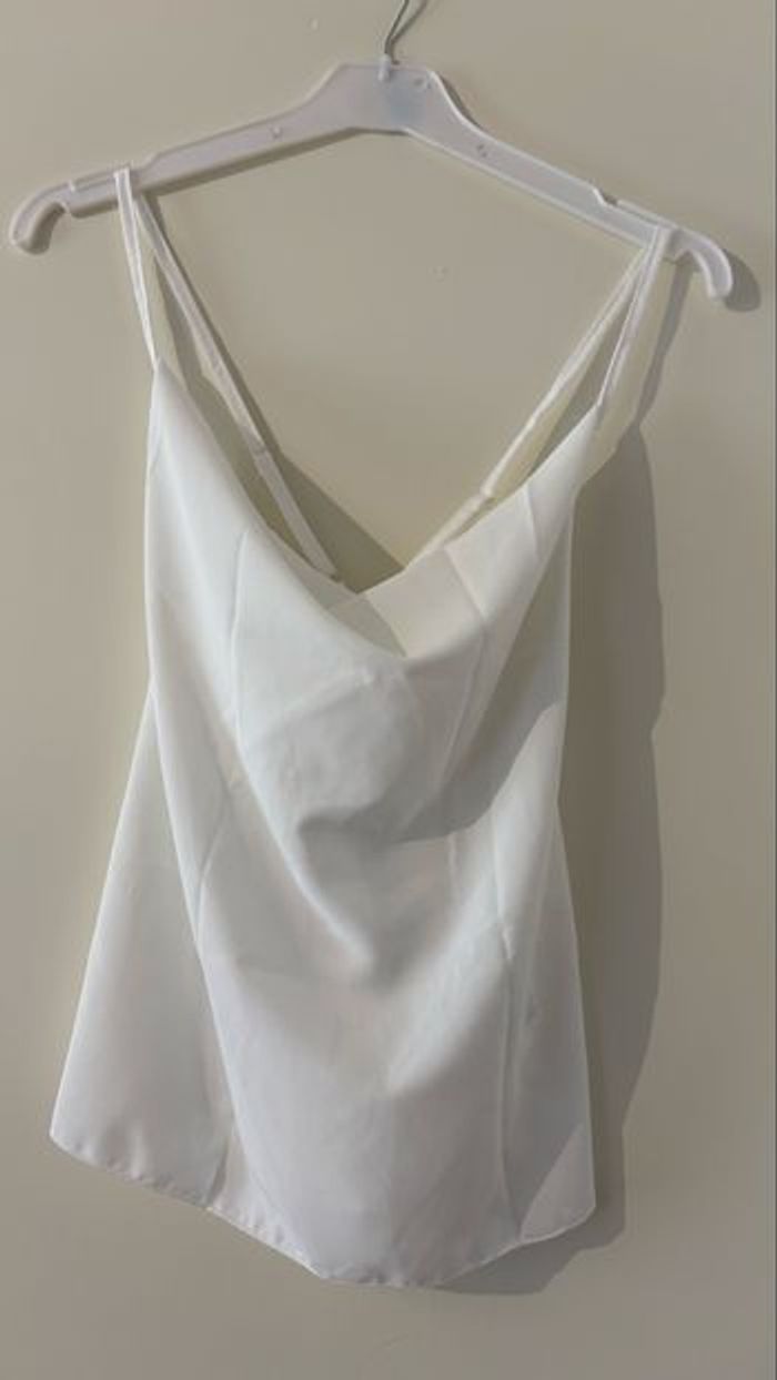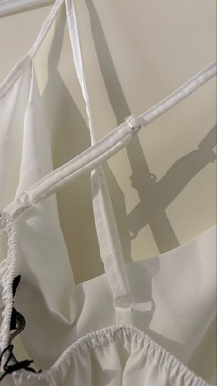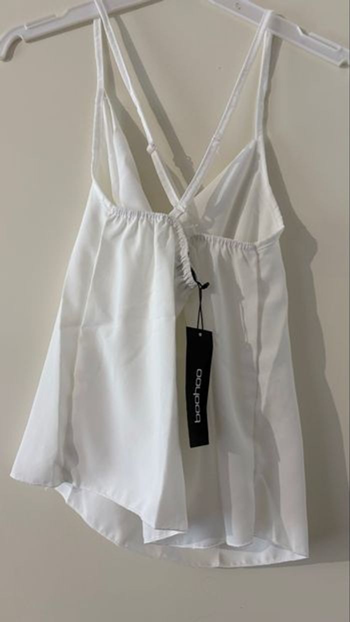 Croisé dans le dos et bretelles réglables. Il y a une doublure au niveau de la poitrine (voir photo). N'hésitez pas à me demander des informations sur quoi que ce soit 😊