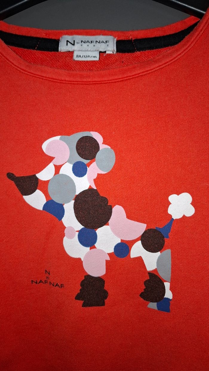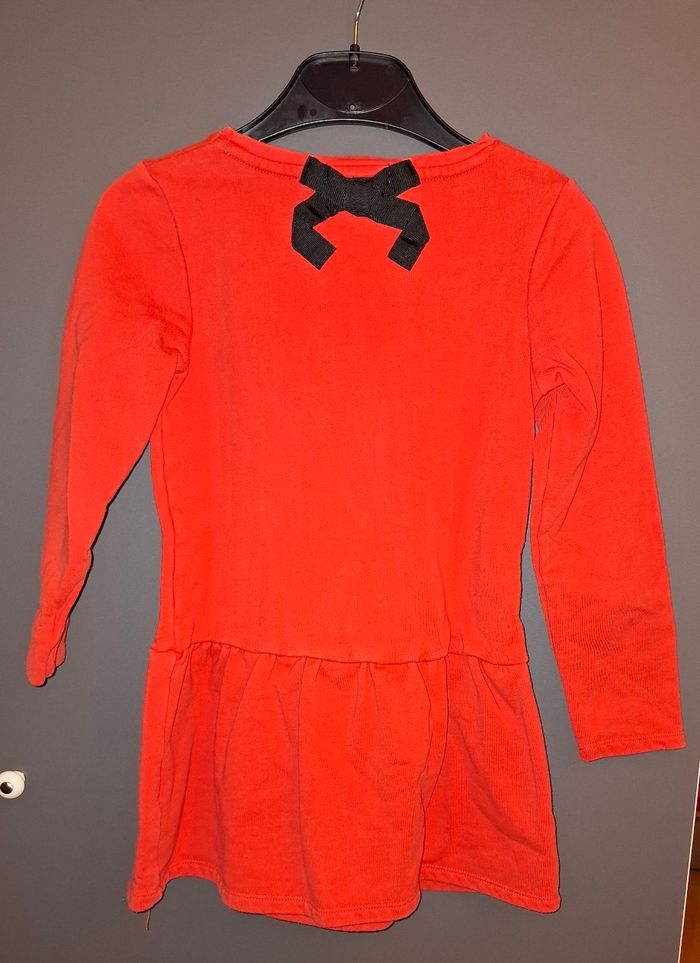 Tunique chaude en TBE Joli détail noeud à l'arrière du cou Motif chien en TBE Taille 8ans Couleur orange corail