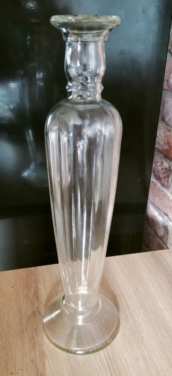 vase en verre transparent de style moderne et contemporain, parfait pour sublimer votre intérieur avec élégance. - Type de produit : Vase - Style : Moderne / Contemporain - Matière : Verre - Couleur : Transparent - Caractéristiques : Col évasé, base circulaire stable - Très bon état - Hauteur 34 cm 5€
