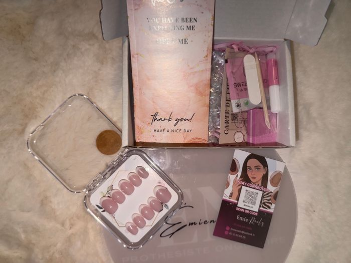 🌸 Bonjour 🌸 Siret : 10064774200012 Disponible en tailles XS, S, M, L. Merci de m’indiquer votre taille 💖 Bien lire toute la description : ✨ Fournis avec : • une lime • un pousse-cuticules • une lingette nettoyante • une fiche explicative • une colle en stick • une feuille de gels pads (colle) • une carte de fidélité avec des stickers à coller à chaque boîte achetée 💝 Une fois la carte pleine, une boîte offerte au choix ! Si vous avez déjà la carte de fidélité, n’hésitez pas à me le dire : j’enverrai uniquement le sticker à coller sur la vôtre ❤️ 📦 Une fois votre carte pleine, faites-le-moi savoir et choisissez : je m’occupe de l’envoi de la boîte offerte 😍 💡 Aide : ❓ Quelle taille dois-je prendre ? Pour trouver votre taille de Press On Nails, vous devez mesurer la largeur de vos ongles. Un test de mesure très simple (que je vous envoie au moment de votre demande) est réalisable chez vous, à l’aide de seulement trois éléments : 🩹 scotch 🖊️ feutre 📏 règle 💅 Nous avons toutes des ongles différents : plats, larges, bombés, courts, rongés… ➡️ La longueur de vos ongles importe peu. 🌷 Mes conseils : La taille standard est la taille S : elle s’adapte à la plupart des personnes. La taille XS convient aux ongles très fins en largeur. Les tailles M et L sont conseillées pour des largeurs d’ongles plus importantes. ✨ Si vous avez les ongles plats, je vous conseille de choisir une taille au-dessus. ✨ Si vous hésitez entre deux tailles, je vous conseille de prendre la taille en dessous pour un résultat qui durera plus longtemps. 📸 Si vous hésitez toujours, vous pouvez m’envoyer une photo de vos mains, ongles bien visibles, avec une pièce de 20 centimes à côté. Je pourrai ainsi regarder la taille réelle 💕 💖 À bientôt, prenez soin de vous, Émienail’s 💅✨ #PressOnNails #NailArtAddict #NailDesigns #NailInspo #NailAddict #NailArtist