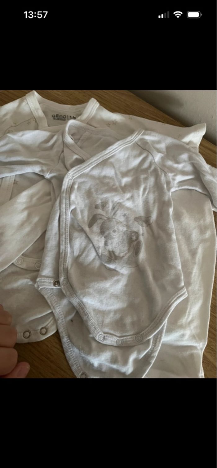 Lot de 6 body 1 mois 2€ le lot Kiabi gemo..