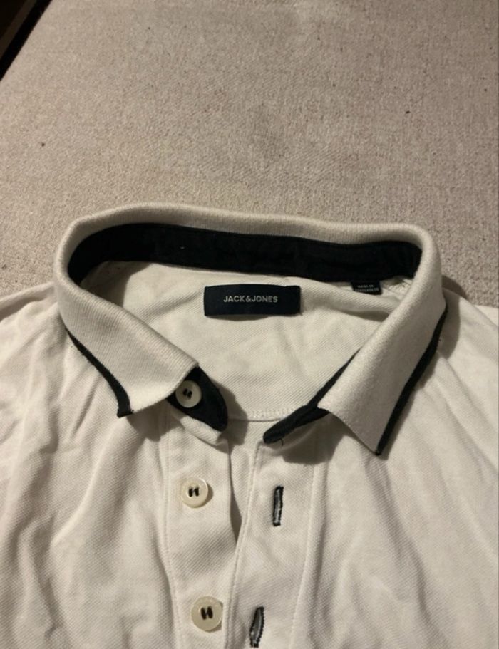 Polo blanc jack&jones en très bon état porté quelque fois. Logo brodé en noir sur le côté gauche