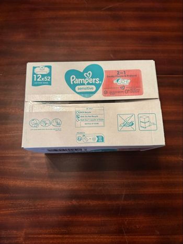 1 pack de 12X52 soit 624 lingettes Pampers Sensitive idéales pour la peau délicate des bébés 👶 Date de péremption 2028 Expédition rapide et soignée #lingettespampers #soinsbebe #pampersharmonie #pampersfreshclean #sensitive