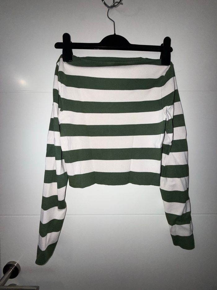 Pull court rayé vert/crème ZARA