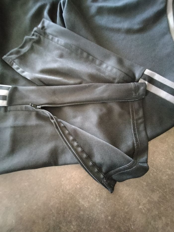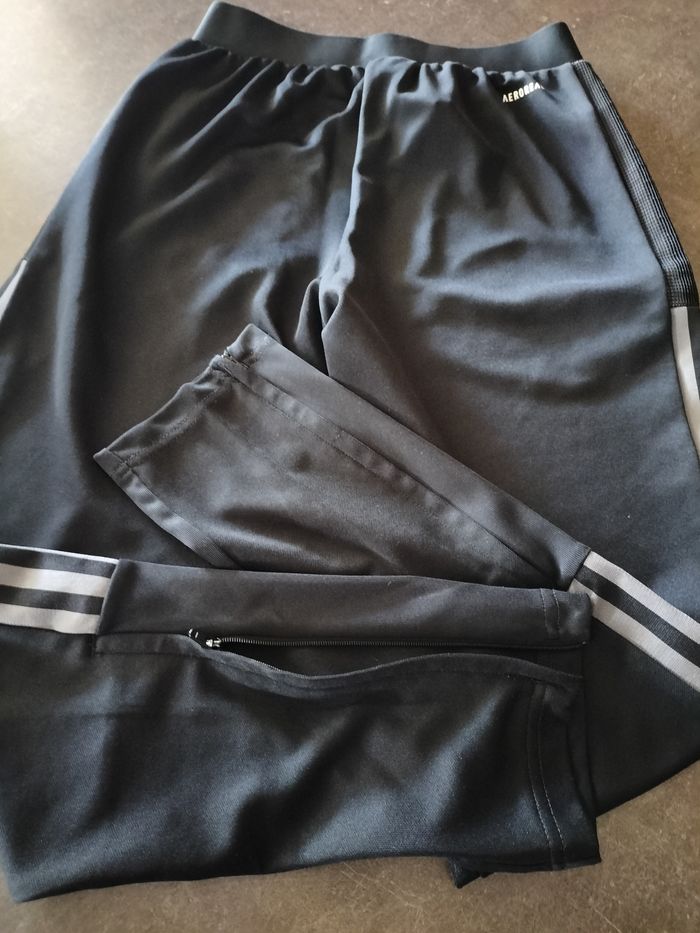 Bas de jogging noir adidas Zippé en bas de chevilles Poches latérales zippées Bandes latérales grises Polyester En très bon état