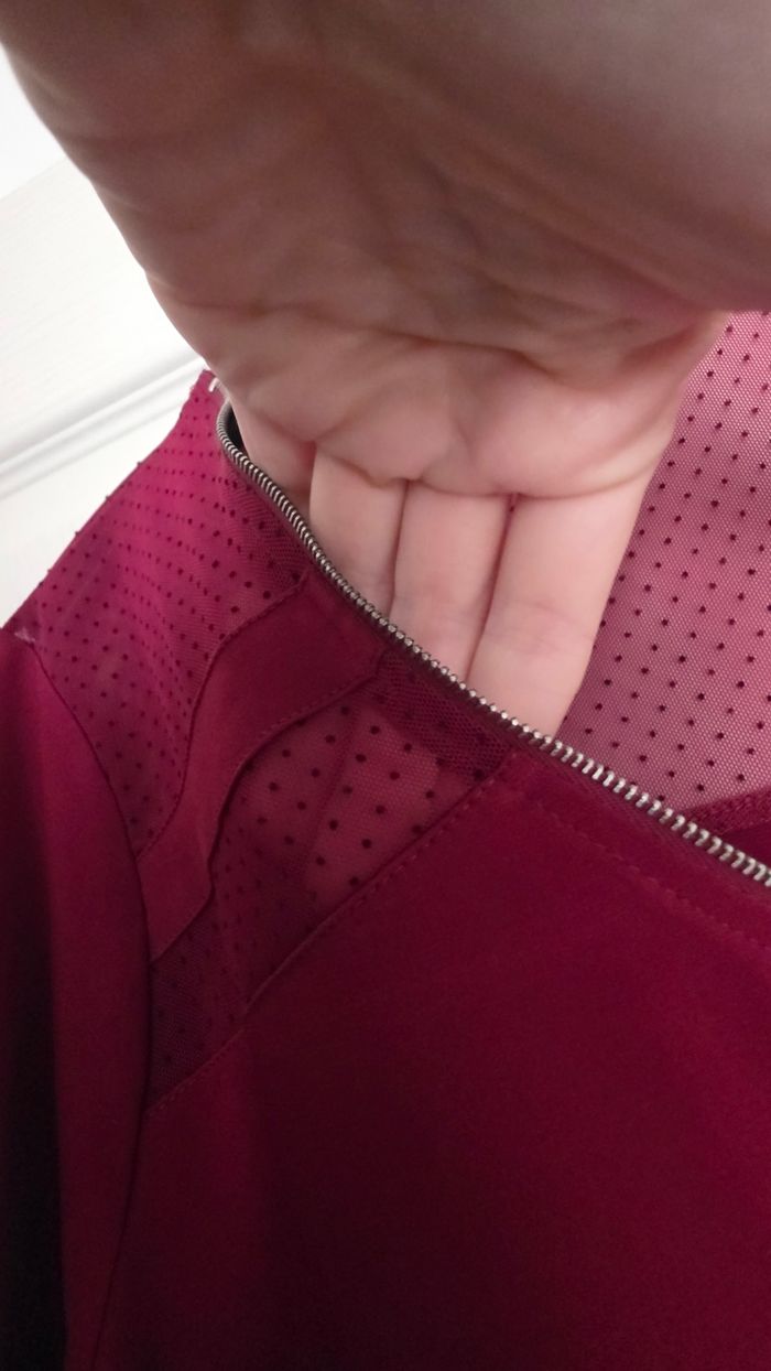 Manque etiquette taille Légèrement trasparant sur les zones du haut à petits points