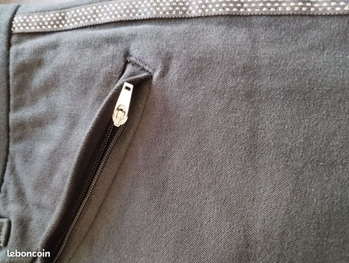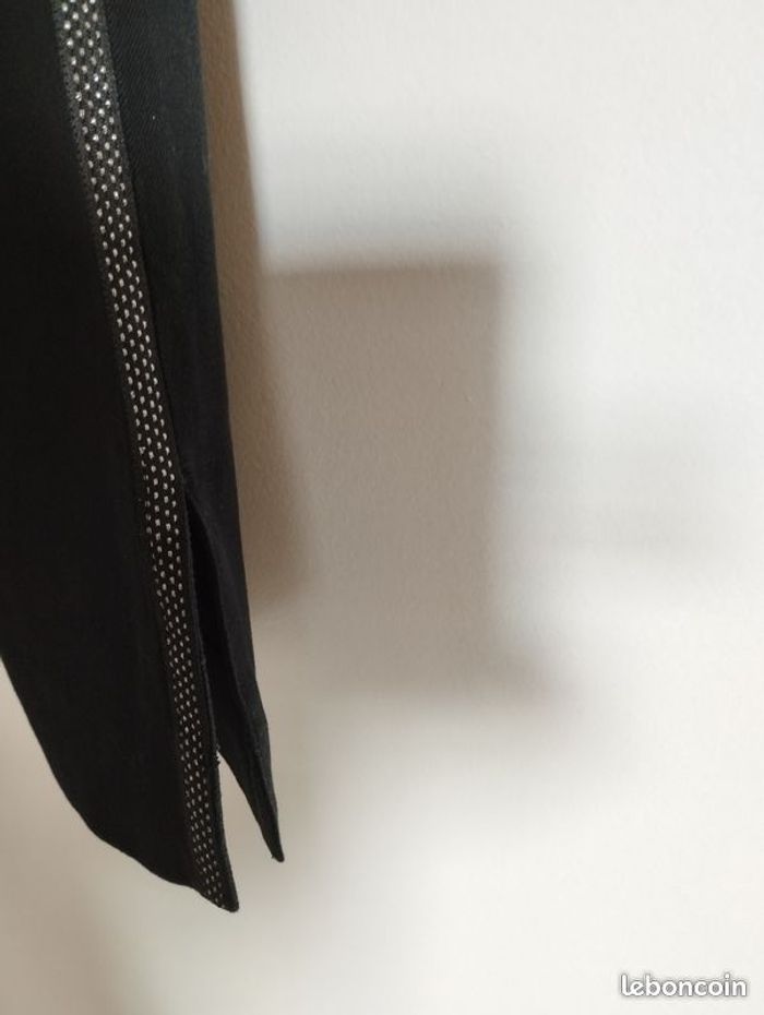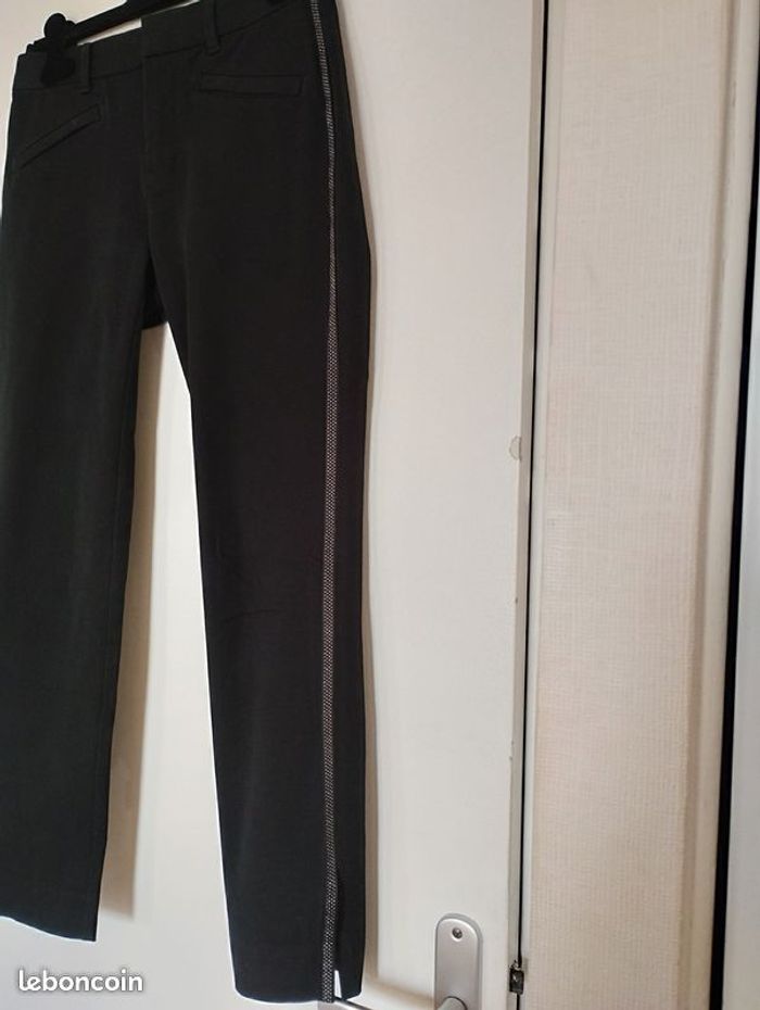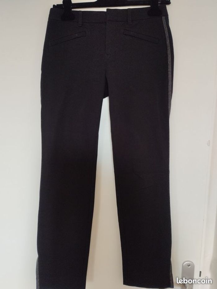 Pantalon noir de chez GAP , Skin Ny stretch, coton élasthanne, 2 poches avant zippées, 2poches plaquées arrière. Ouvertures de 12cm sur le coté bas du pantalon . Pattes fils argenté sur la longueur des jambes des 2 cotés. Bel matière épaisse et bien souple ! Longueur 88cm. Tour de taille 37cm. Très peu porté.