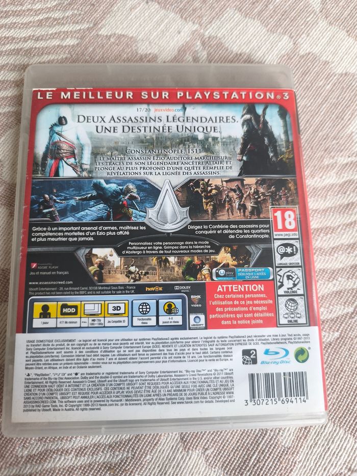 Jeux ps3 assassin s' creed révélations âgé 18ans