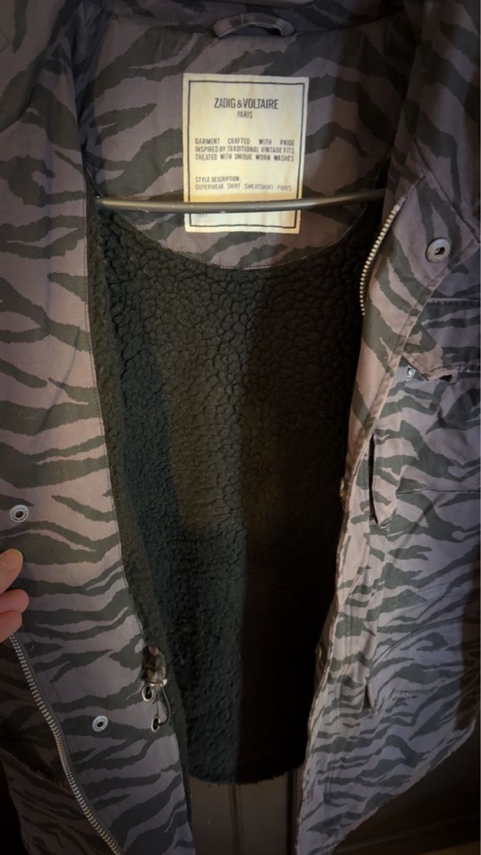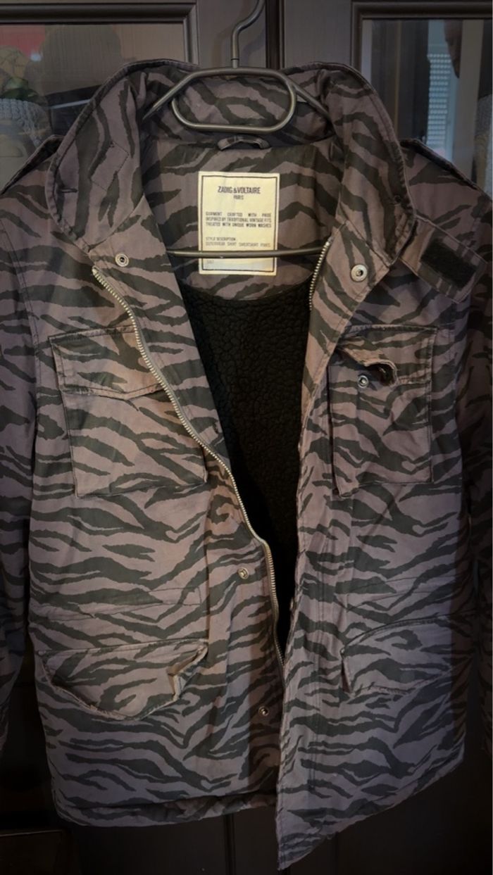 Parka grise zébrée Taille 16 ans Très bon état Marque : zadig & voltaire