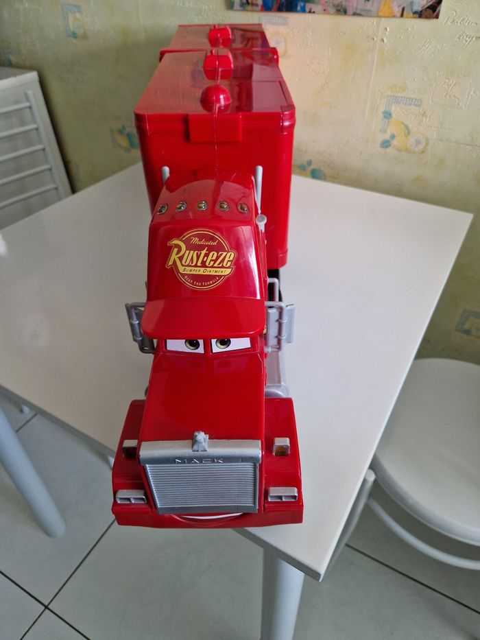 Je vends ce camion Cars Mega Mack transformable avec circuit intégré, parfait pour les enfants qui adorent les aventures de Flash McQueen et ses amis ! - Type de produit : Voitures & circuits - Marque : Mattel - Gamme / Licence : Cars - Modèle : Camion Mack transformable - Fonctionnalités : Transformable, circuit intégré - Matière : Plastique - Âge recommandé : De 3 à 9 ans Bon état. N'hésitez pas à me contacter pour plus d'infos ou de photos !
