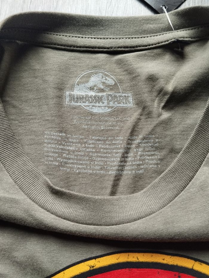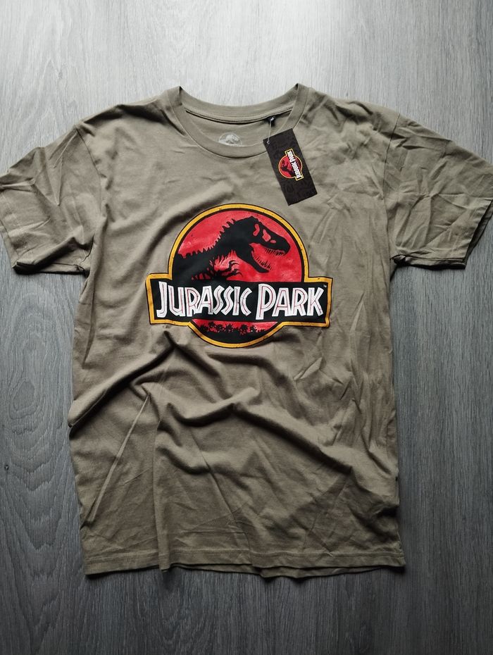 T-shirt Jurassic Park pour homme . Taille : M . Couleur : Kaki . Col rond . Manches courtes . Matière : Coton . Article sous licence officielle . Fabricant : Cotton Division . État : neuf avec étiquette ✅ Votre achat est expédié sous 48h (sauf weekends et jours fériés) ✅ Mes Colis sont toujours soigneusement emballés et protégés ! ✅ Mon dressing est mis à jour régulièrement. Abonnez-vous à mon profil pour ne pas manquer les nouveaux arrivages. Sébastien.