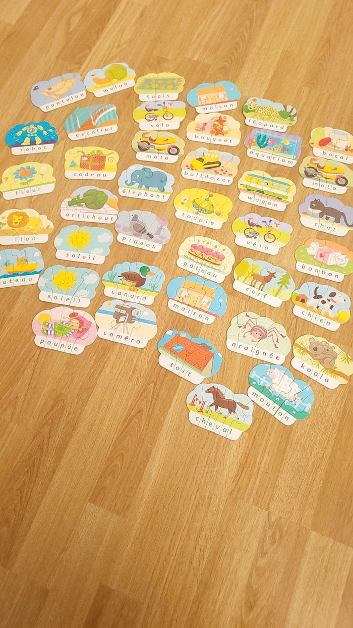 Premiers mots en forme de puzzles complet (il n'y a plus la notice). Je mets bon état car la boîte est un peu abîmée.