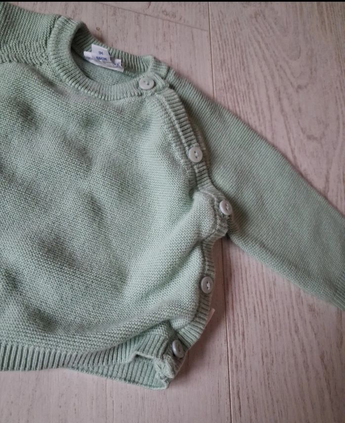 Je vends ce gilet en maille de la marque P'tit bisou, parfait pour bébé de 1 mois. - Type de produit : Gilet - Taille : 1 mois / 56 cm - Marque : P'tit bisou - Couleur : Vert - Matière : Maille N'hésitez pas à me contacter pour plus d'informations.