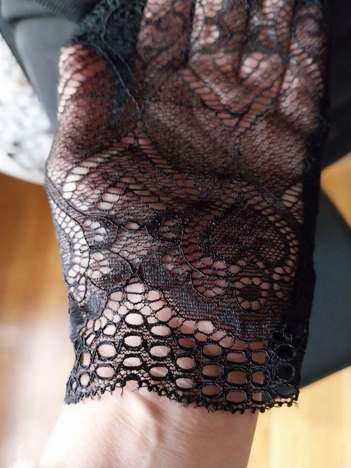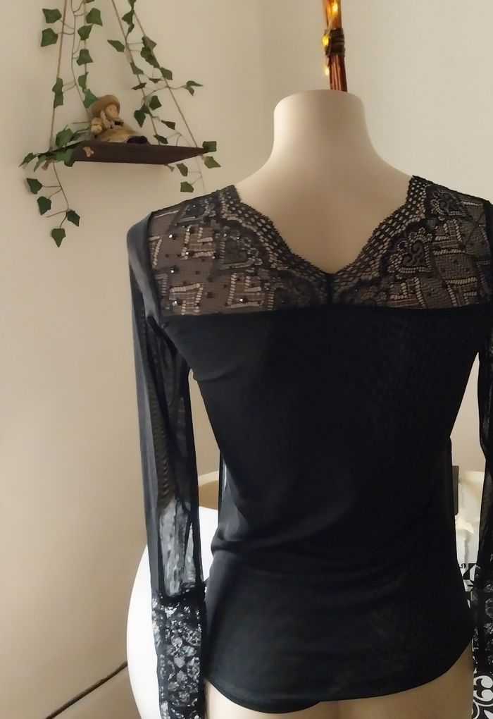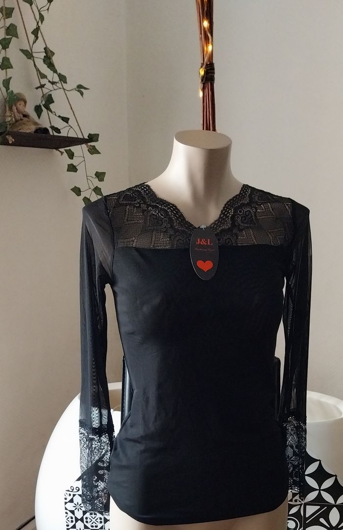 Joli haut Semi-transparent. Belles finitions manches. Convient 38.