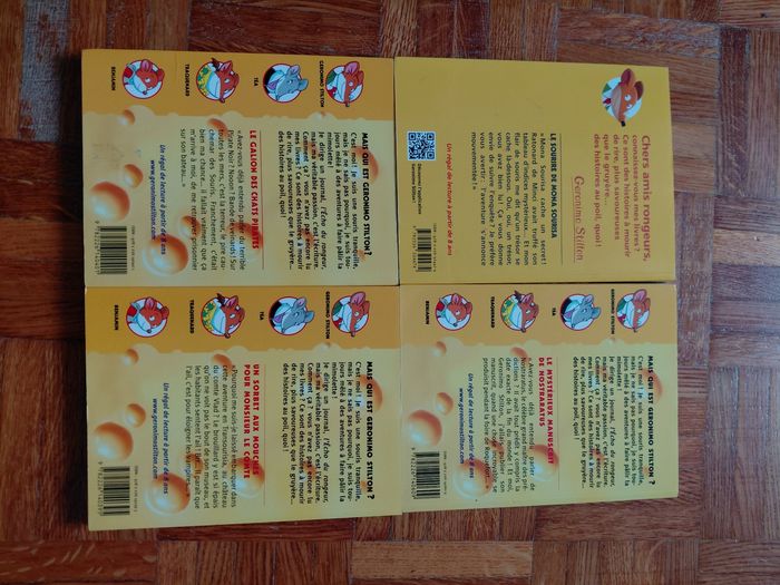 Livres geronimo stilton 4 premiers tomes Le sourire de mona sourisa Le galion des chats pirates Un sorbet aux mouches pour monsieur le comte Le mystérieux manuscrit de nostraratus