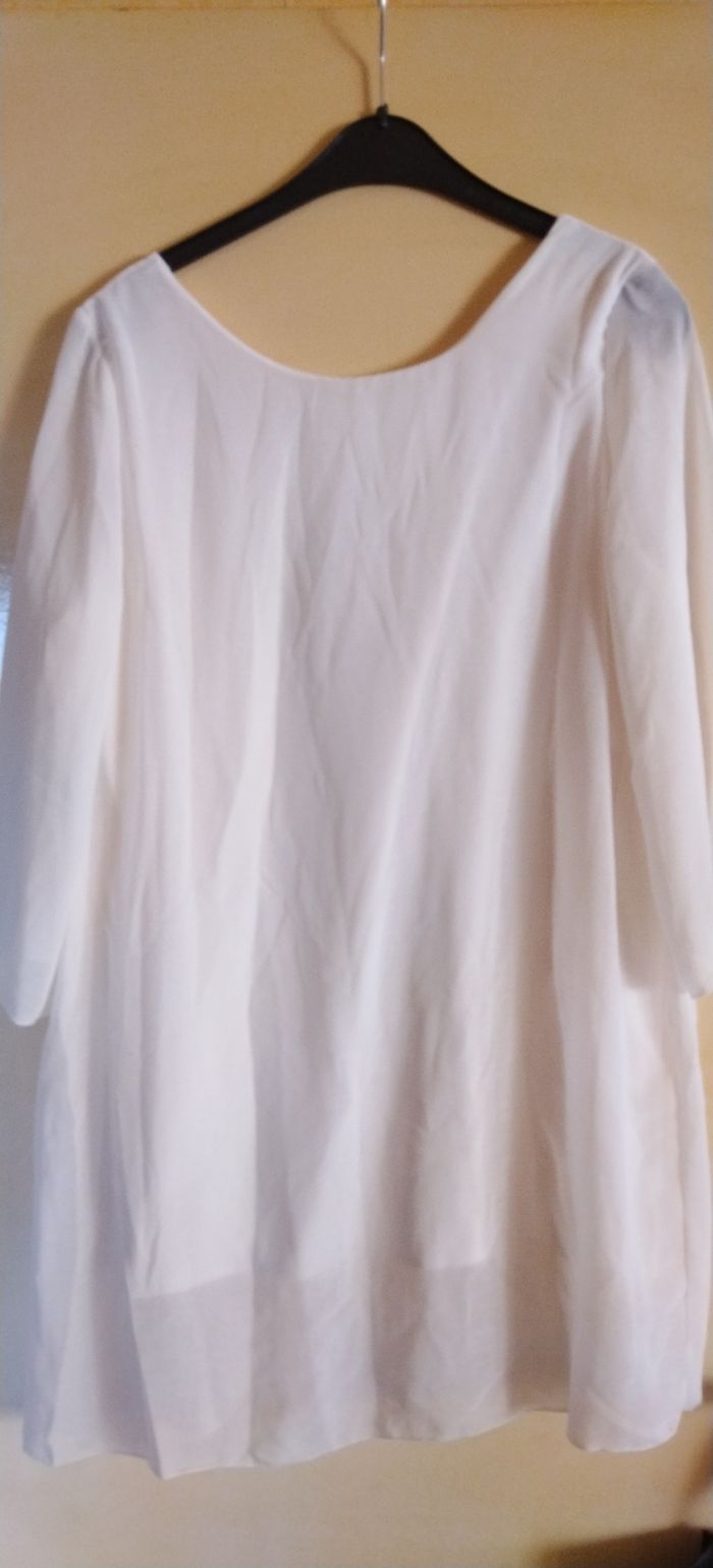 Très jolie tunique légère doublée Manches transparentes Largeur épaule 42 cm Largeur poitrine 50 cm Longueur manche 44 cm Largeur manche 22 cm Longueur totale 81 cm devant et 85 cm à l'arrière