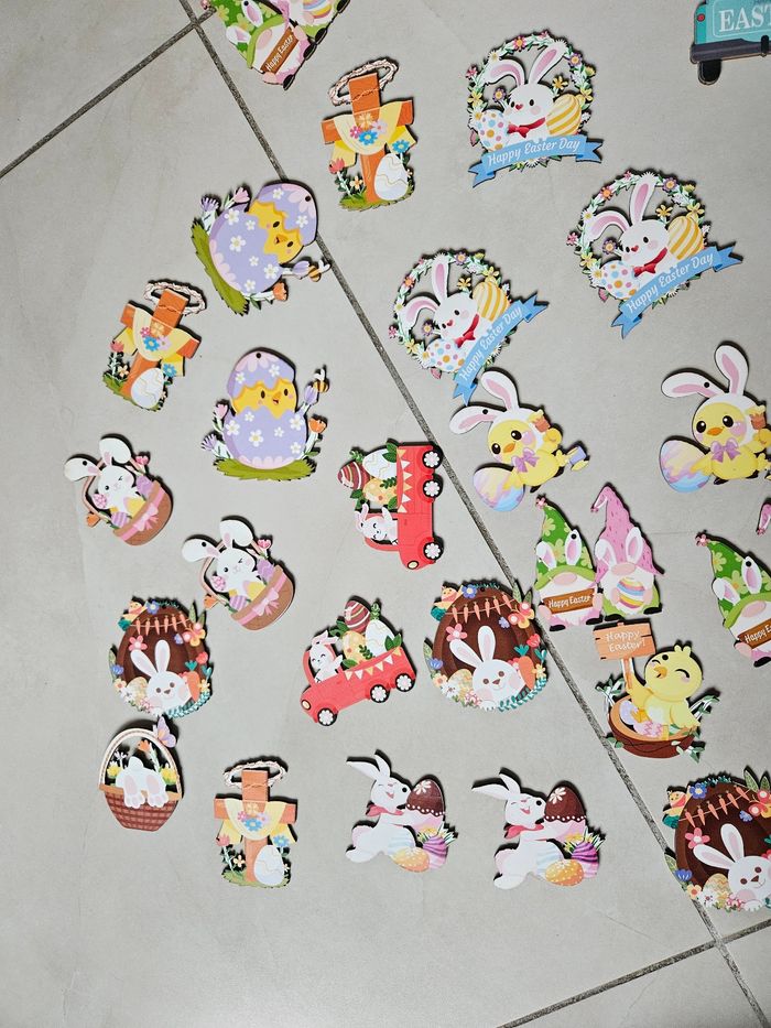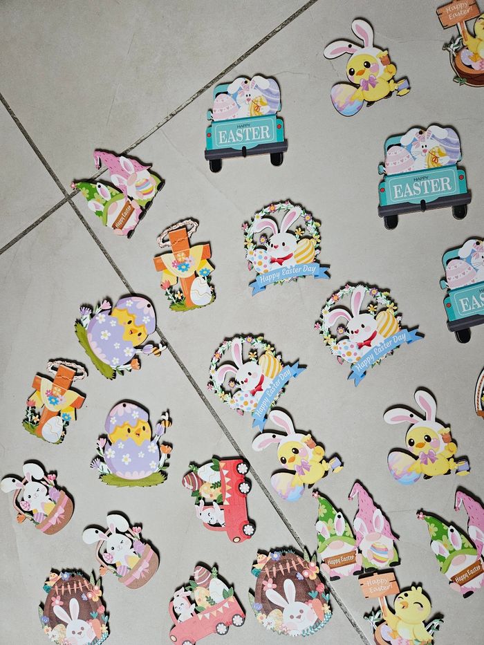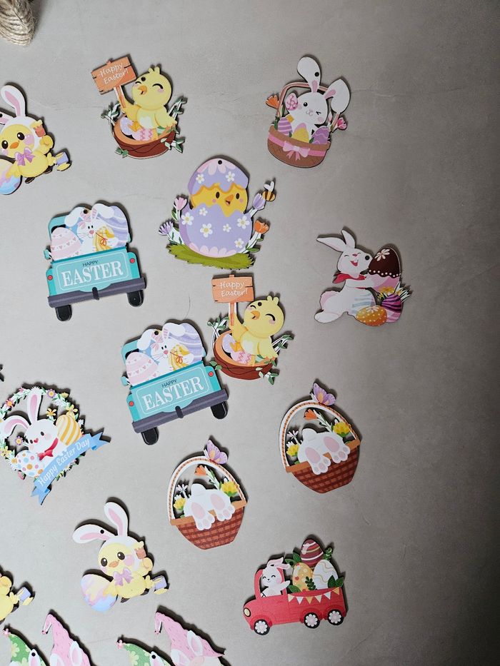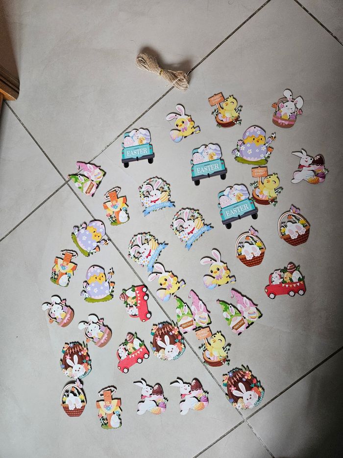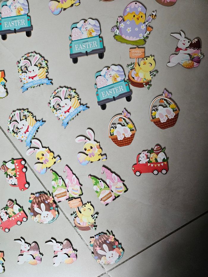 Lot de 36 décoration de pâques en bois à accroché avec fil, neuf , marque Amazon