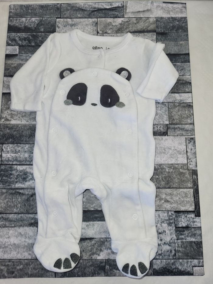 ​Description : Accueillez bébé dans un cocon de douceur avec ce duo de pyjamas sélectionnés par Jardin Secret. Avec leurs motifs animaliers adorables et leur matière veloutée, ils sont parfaits pour les premières nuits. ​Le Pyjama "Petit Panda" : Un modèle blanc pur avec une tête de panda géante sur le devant. On adore les petits détails gris pailletés sur les joues et les pattes au bout des pieds. ​Le Pyjama "Renard des Neiges" : Un modèle crème/beige très doux avec un grand motif de renard stylisé sur le torse. Les petites pattes contrastées au bout des pieds ajoutent une touche finale trop mignonne. ​Praticité Absolue : Ouverture par pressions sur tout le devant (forme en Y), ce qui facilite énormément le change de bébé, surtout la nuit. ​Confort : Velours épais et ultra-moelleux pour maintenir une température idéale. ​Détails techniques : ​Marque : Gémo (Gamme "For Good"). ​Taille : 0 mois / Naissance. ​Matière : Velours polyester tout doux. ​État : Excellent état.