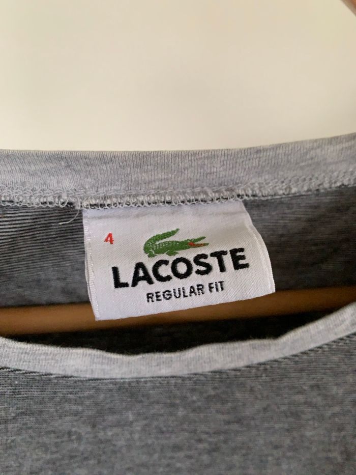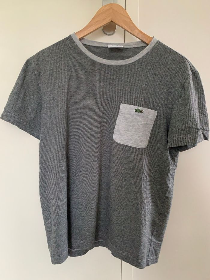 Je vends ce T-shirt Lacoste gris. Un basique intemporel. - Type de produit : T-shirt - Marque : Lacoste - Univers : Femme - Taille : 38 - M - Couleur : Gris - Caractéristiques : Col rond, Manches courtes